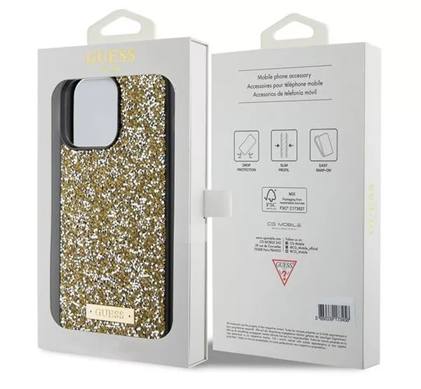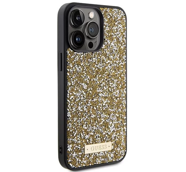Guess Rhinestone Metal Logo Apple iPhone 15 Pro hátlap tok, sárga