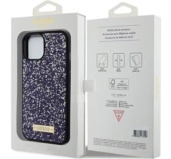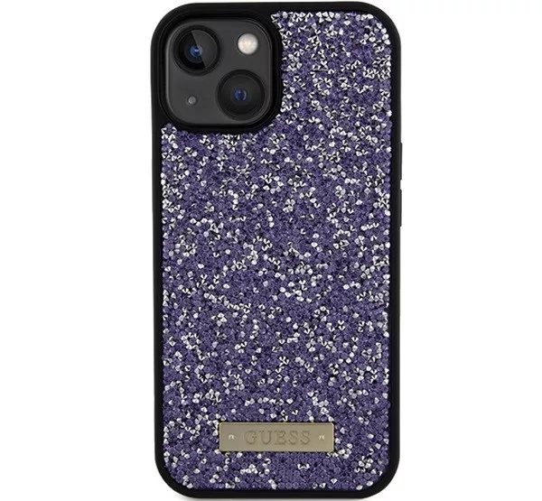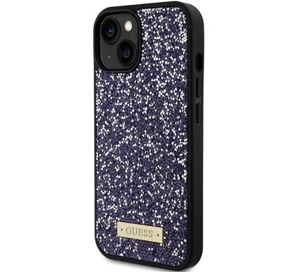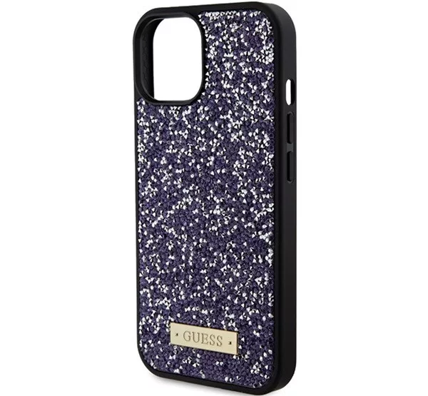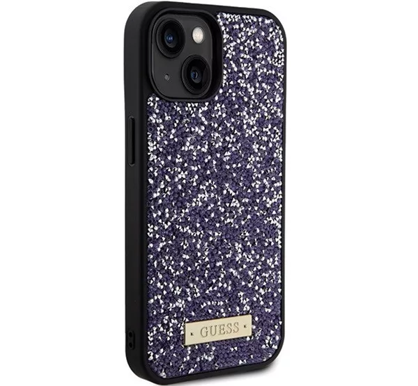Guess Rhinestone Metal Logo Apple iPhone 15 hátlap tok, lila