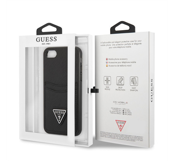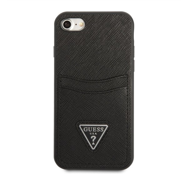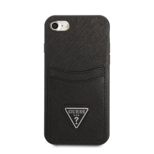 Guess Saffiano Double Card Apple iPhone SE 2022/2020/8/7 bőr hátlap tok, fekete
