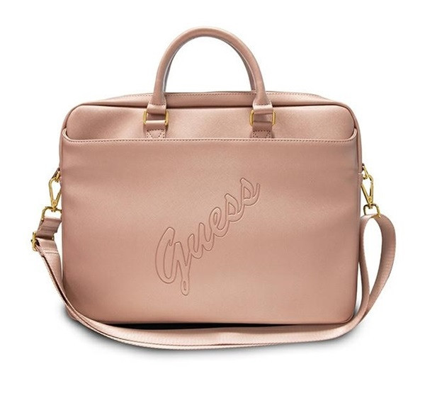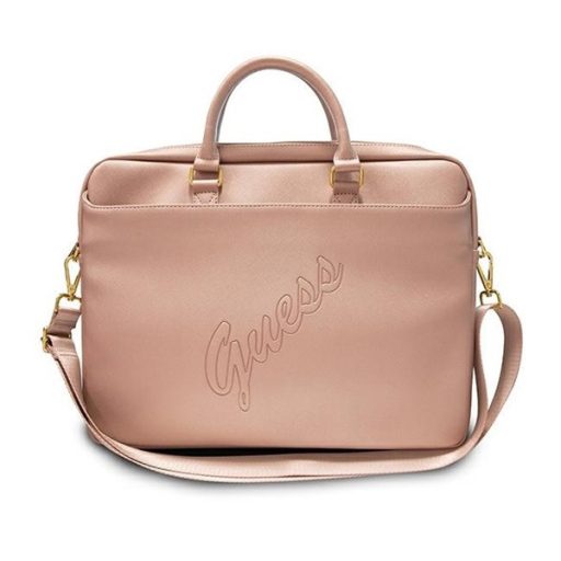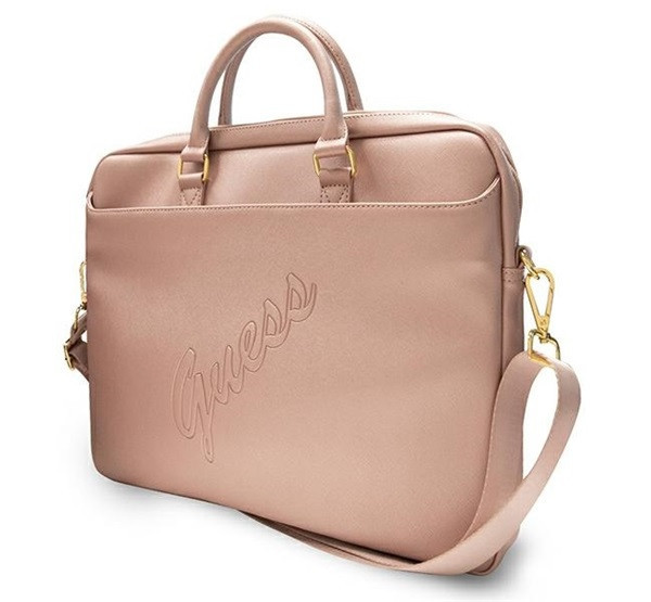 A Guess Saffiano Script 16 hüvelykes laptop táska stílusos és praktikus választás. Kiváló minőségű, bőrhatású anyagokból készült, és a híres Guess logóval van díszítve. A táska párnázott belső résszel rendelkezik, amely optimális védelmet nyújt a laptop számára. Cipzáras záródással és állítható, levehető vállpánttal van felszerelve, így kényelmesen hordozható. Ideális mindennapi használatra és utazáshoz.