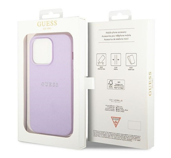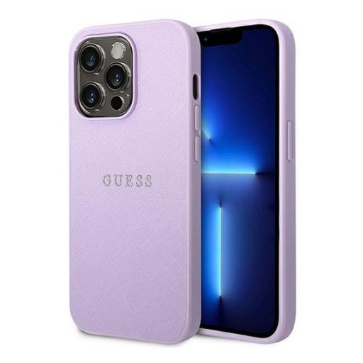 Guess Saffiano Strap Apple iPhone 14 Pro hátlap tok, lila