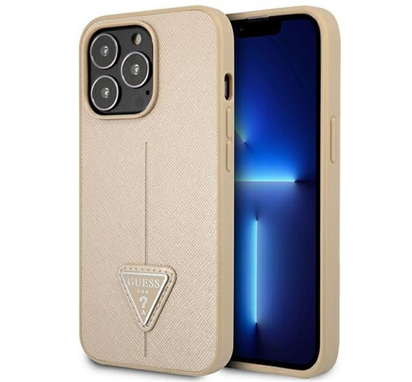 Guess SaffianoTriangle Apple iPhone 14 Pro hátlap tok, bézs