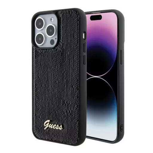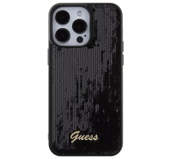 Guess Sequin Script Metal Apple iPhone 15 Pro Max hátlap tok, fekete