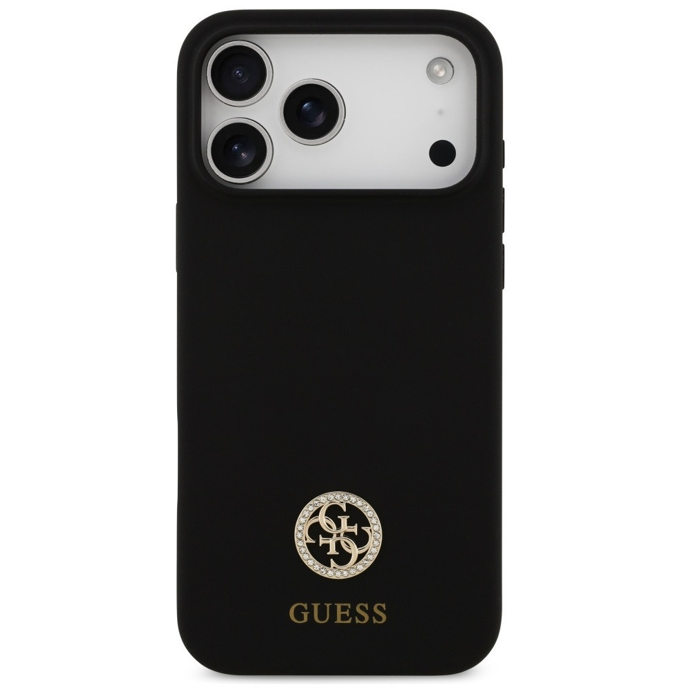 Guess Silicone Logo Strass 4G Apple iPhone 17 Pro Max MagSafe hátlap tok, fekete