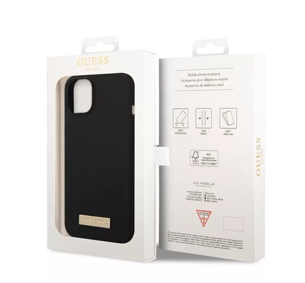Guess Silicone Metal Logo MagSafe Apple iPhone 14 Plus hátlap tok, fekete