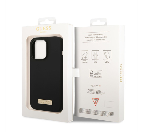 Guess Silicone Metal Logo MagSafe Apple iPhone 14 Pro hátlap tok, fekete