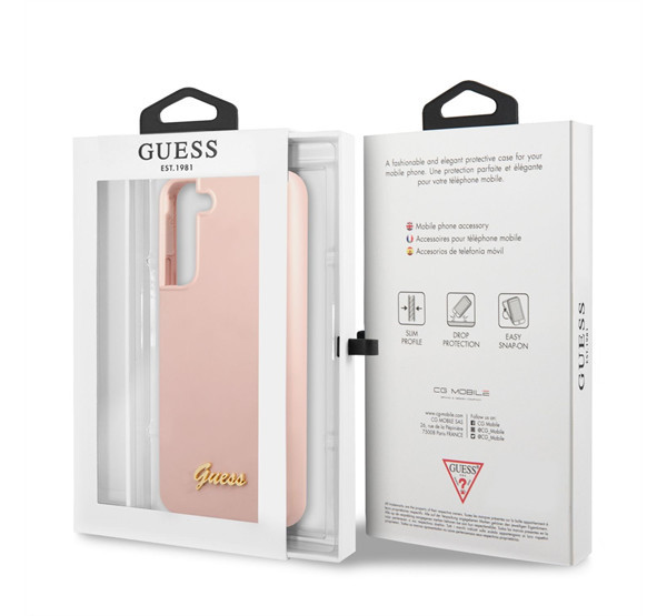 Guess Silicone Metal Logo Samsung Galaxy S22+ hátlap tok, rózsaszín