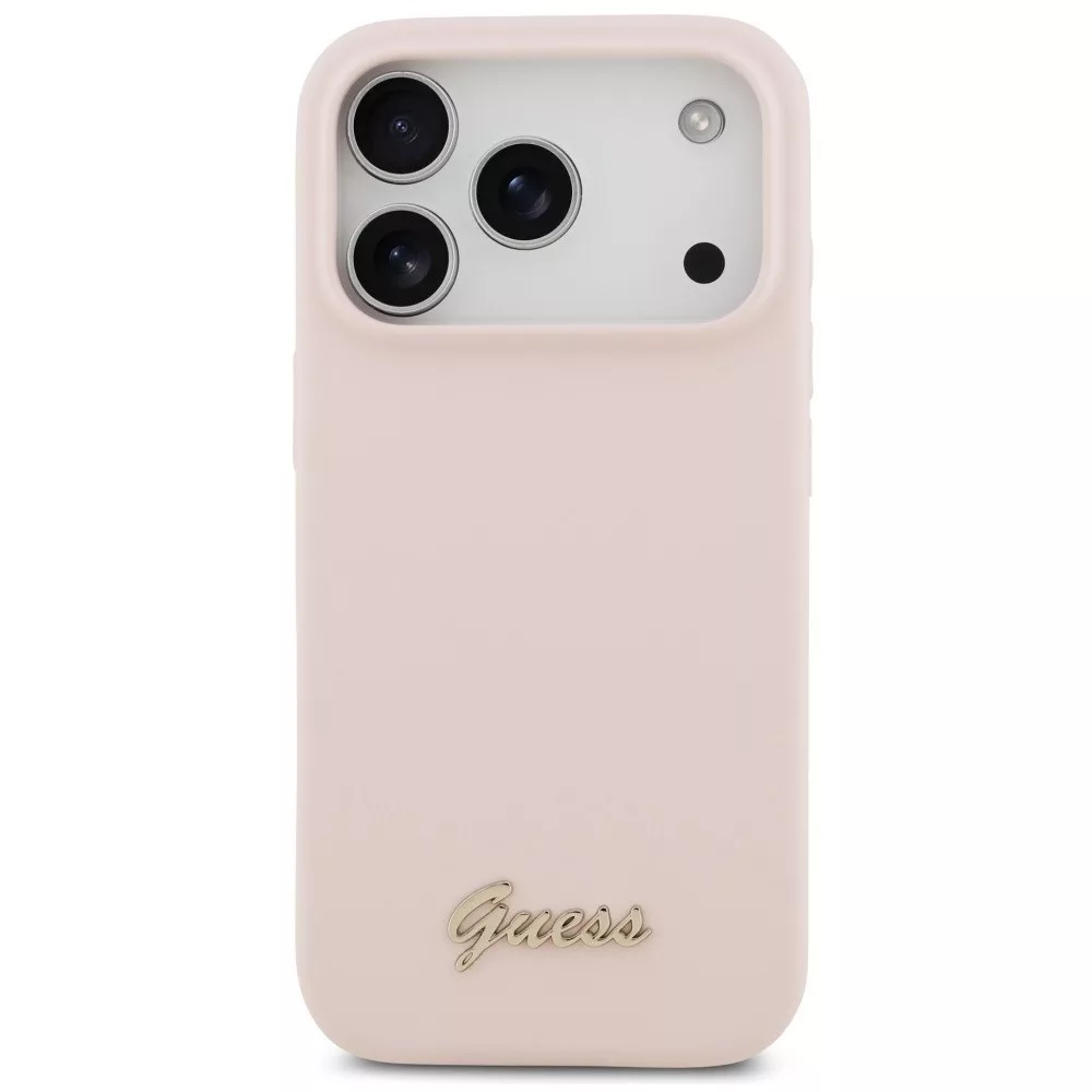 Guess Silicone Script Metal Logo Apple iPhone 17 Pro MagSafe tok, rózsaszín
