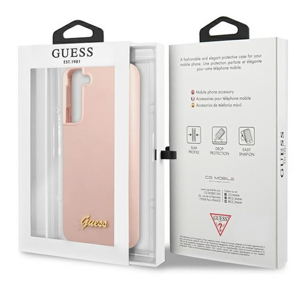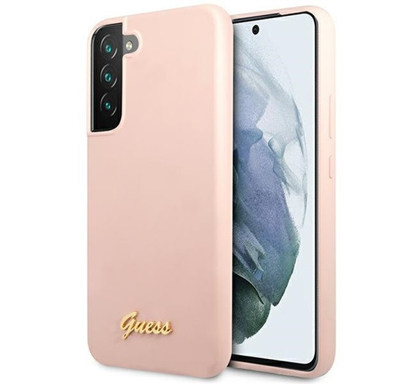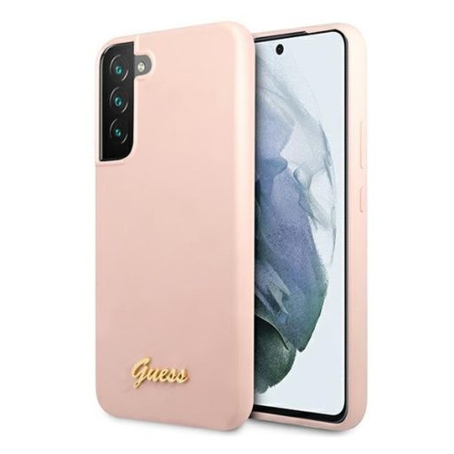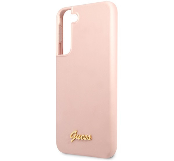 Guess Silicone Script Metal Samsung Galaxy S23+ szilikon tok, rózsaszín