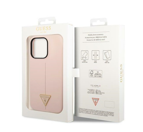 Guess Silicone Triangle Apple iPhone 14 Pro hátlap tok, pink
