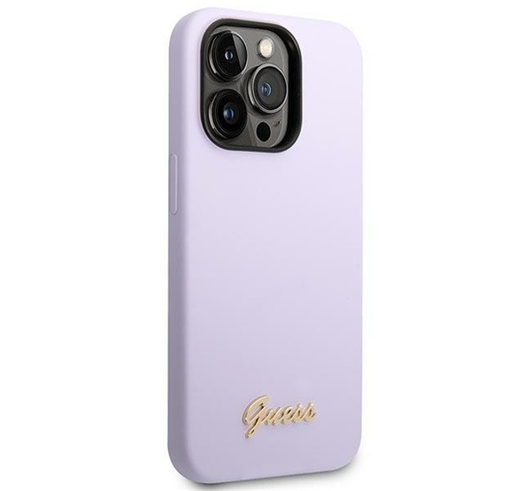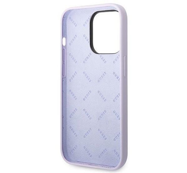 Guess Silicone Vintage Gold Apple iPhone 14 Pro hátlap tok, lila