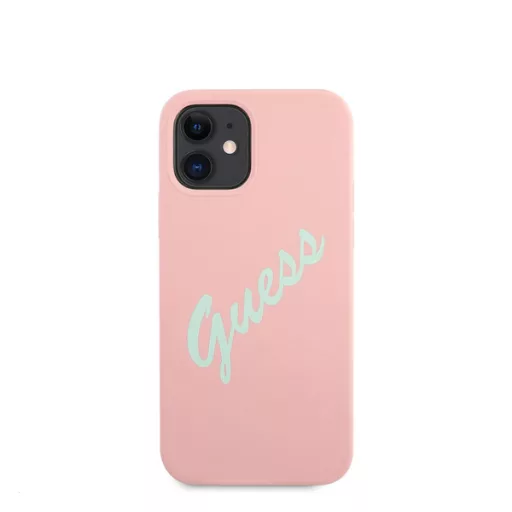 Guess Silicone Vintage Green Script Apple iPhone 12 mini hátlap tok, rózsaszín