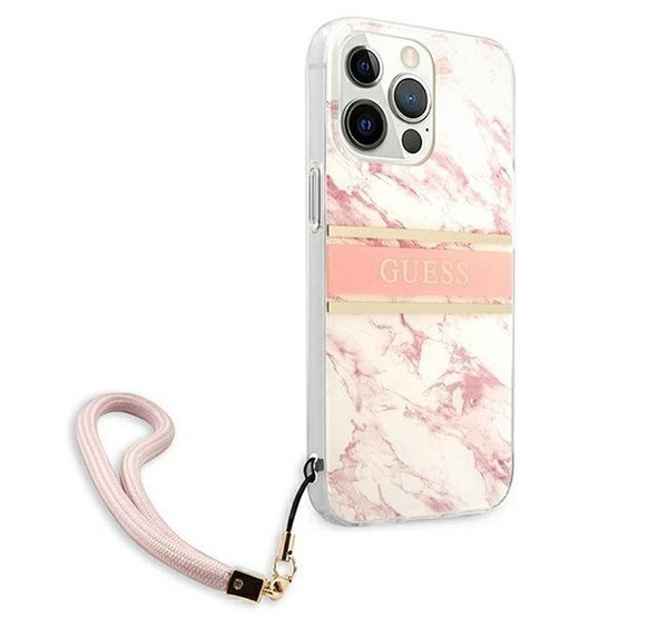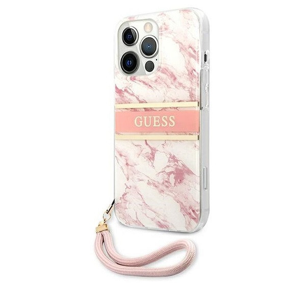 Guess TPU Marble Stripe Apple iPhone 13 Pro hátlap tok, rózsaszín