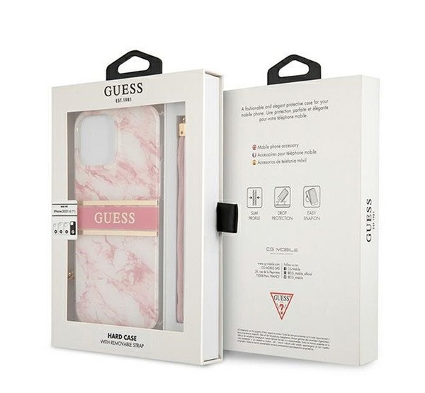 A Guess márvány tokok időtlen eleganciája mindig elkápráztat egyedi kialakításával. A tokot elegáns arany csíkok és a Guess logó díszíti, az egészet pedig a tok színéhez illő praktikus zsinór egészíti ki.