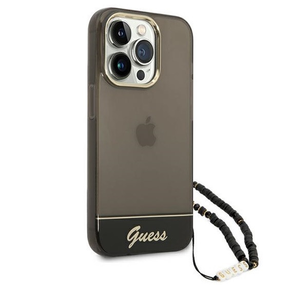 Guess Translucent Pearl Strap Apple iPhone 14 Pro hátlap tok , fekete