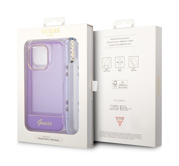 Guess Translucent Pearl Strap Apple iPhone 14 Pro hátlap tok , lila