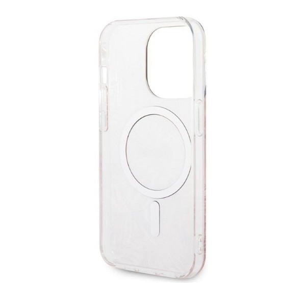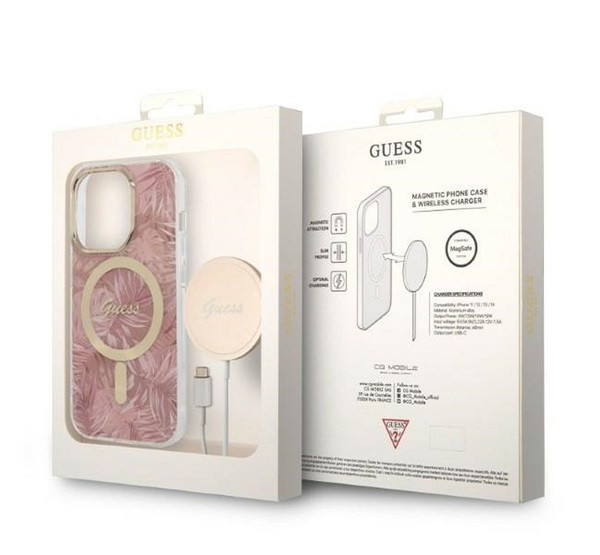 A szokatlan vizuális hatásokat a kamera körüli keret és a Guess divatház emblémája formájában megjelenő arany kiegészítők biztosítják. A maximális felhasználói kényelem érdekében a tok a MagSafe technológiával kompatibilis mágneses gyűrűvel van ellátva, amely lehetővé teszi a gyors, vezeték nélküli töltést.