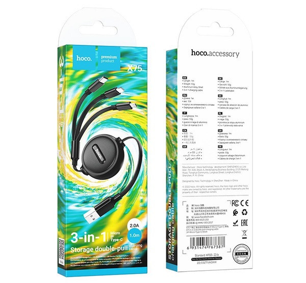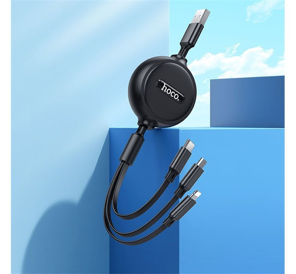 A Hoco X75 3in1 USB kábel egy többfunkciós töltő- és adatkábel, amely USB, Lightning, MicroUSB és Type-C csatlakozókkal van ellátva. Ez a kábel ideális választás azok számára, akik különféle eszközöket használnak, hiszen egyszerre több típusú csatlakozóval is kompatibilis. Hossza 1 méter, ami elegendő rugalmasságot biztosít a mindennapi használathoz. A kábel legfeljebb 2.1A áramerősséggel támogatja az eszközök gyors töltését. Tartós kialakításának köszönhetően hosszú élettartamot biztosít, és ideális választás mind otthoni, mind utazási célokra