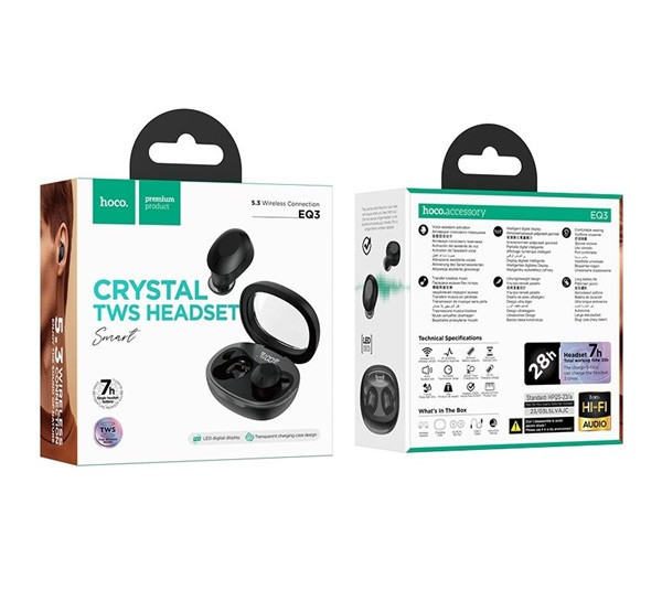 Hoco EQ3 TWS Smart True bluetooth headset, fekete Hoco EQ3 TWS Smart True bluetooth headset, fekete Hoco EQ3 TWS Smart True bluetooth headset, fekete