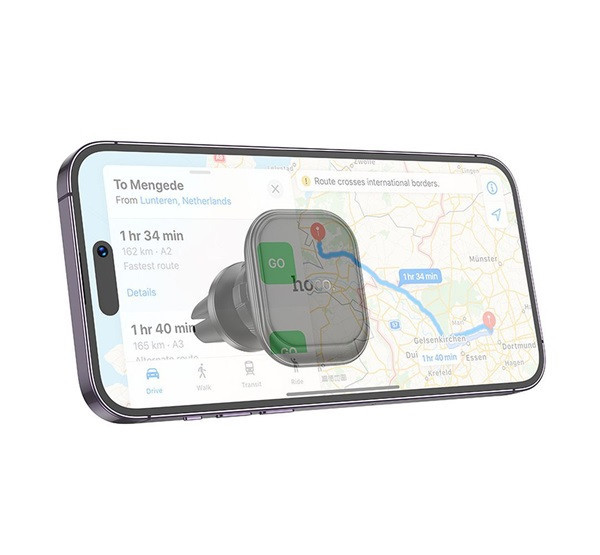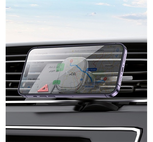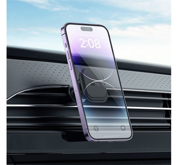 Hoco mágneses autós tartó, amelyet a hűtőrácsra történő rögzítésre terveztek. Lehetővé teszi az okostelefon biztonságos használatát vezetés közben.