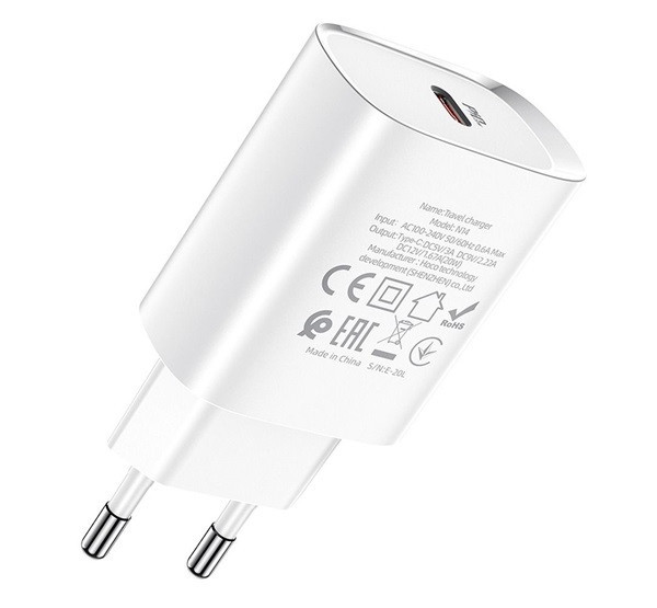 A Hoco N14 hálózati töltő adapter egy kompakt és erőteljes eszköz, amely támogatja a 20W-os Type-C PD (Power Delivery) gyorstöltést. A töltő fehér színben érhető el, és EU csatlakozóval rendelkezik, így kompatibilis az európai szabványokkal. Az adapter PC lángálló anyagból készült, amely biztosítja a biztonságos és megbízható használatot. Mérete 824023mm, súlya pedig mindössze 50g, ami rendkívül könnyűvé és hordozhatóvá teszi.