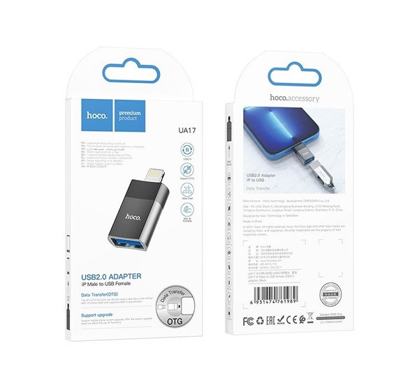 Hoco UA17 OTG adapter USB-A-Lightning, fekete