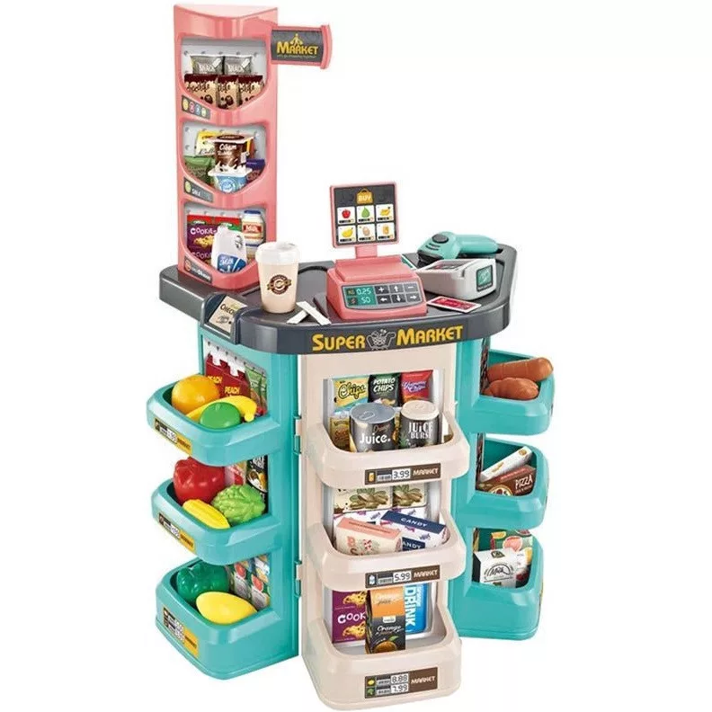 Játék szupermarketünkkel igazán izgalmas lesz a bevásárlás. A gyerekek számos kiegészítővel játszhatnak, közöttük élelmiszerekkel, gyümölcsökkel, péksüteményekkel. A játékélményt egy bevásárlókocsi fokozza, melyet tologathatnak a gyerekek. A szetthez tartozik kódolvasó, mérleg és bankkártya terminál is. A játék egyszerűen összeállítható, így hamar birtokba vehetik a kicsik. Kiváló ajándék lehet szülinapra, karácsonyra, illetve bármikor, amikor meglepnéd gyermekedet.