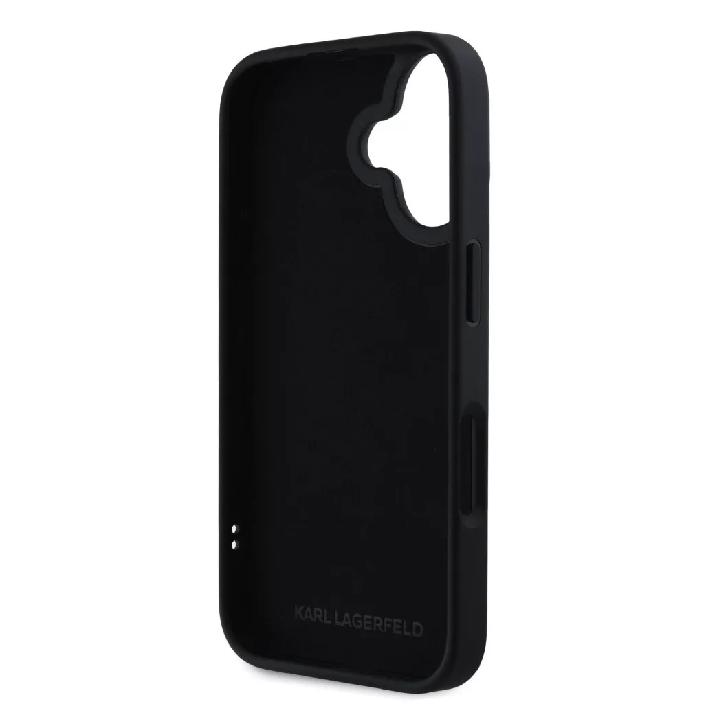 Karl Lagerfeld 3D Rubber Double Heads iPhone 16 hátlap tok, fekete