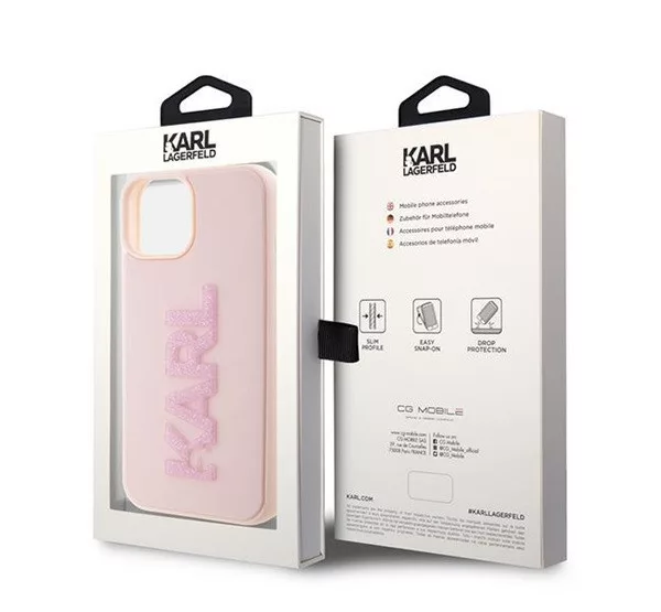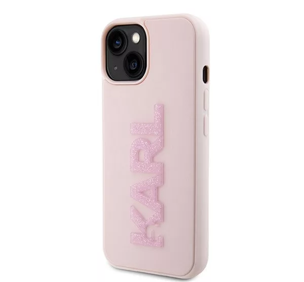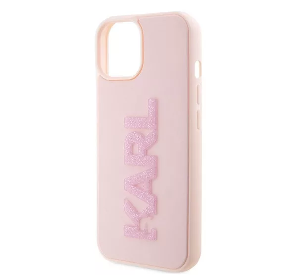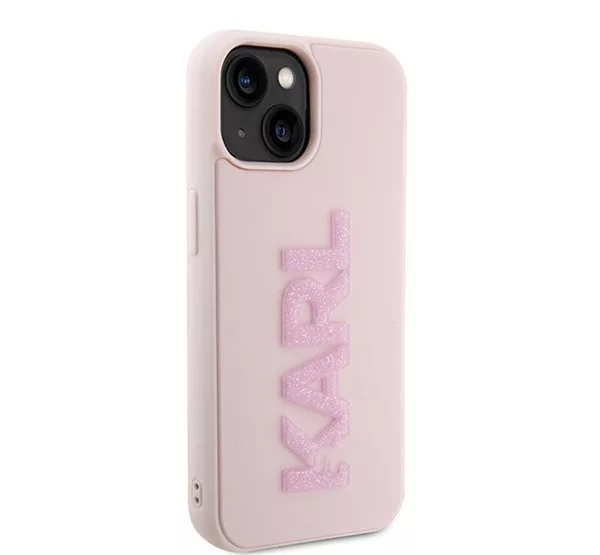 Karl Lagerfeld 3D Rubber Glitter Logo Apple iPhone 15 Plus hátlap tok, rózsaszín