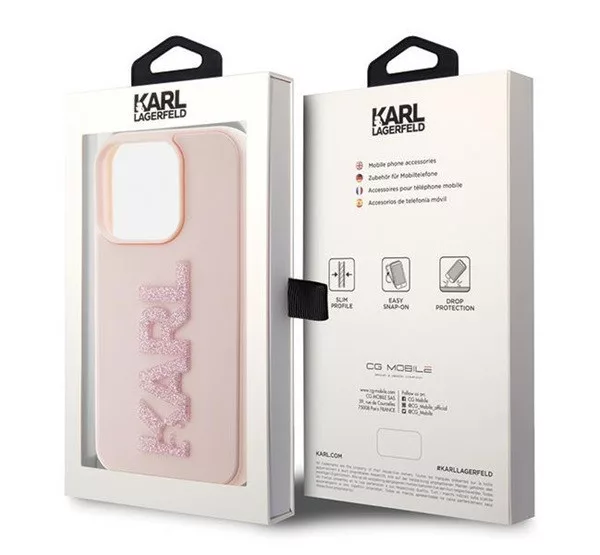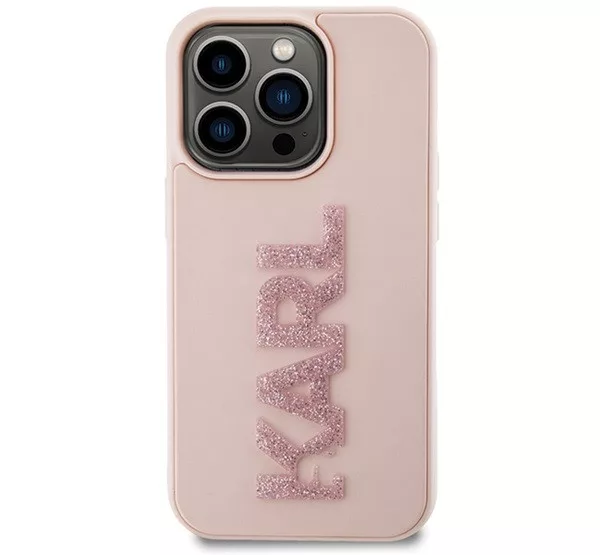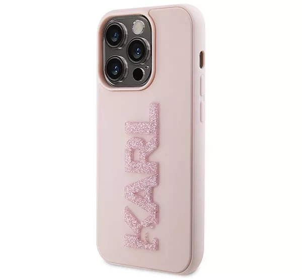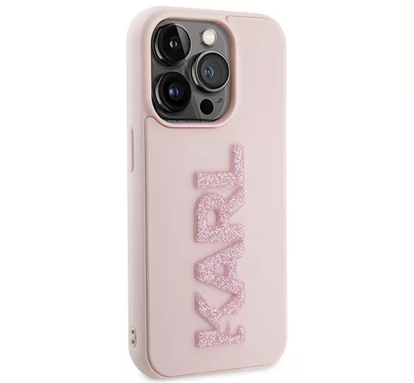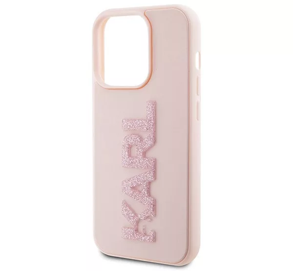 Karl Lagerfeld 3D Rubber Glitter Logo Apple iPhone 15 Pro Max hátlap tok, rózsaszín
