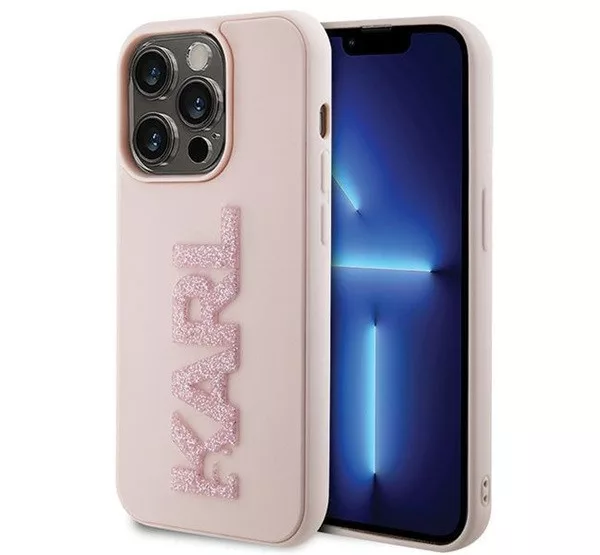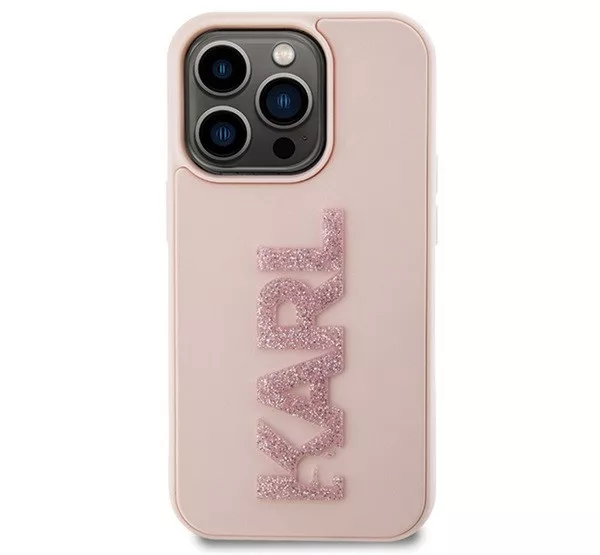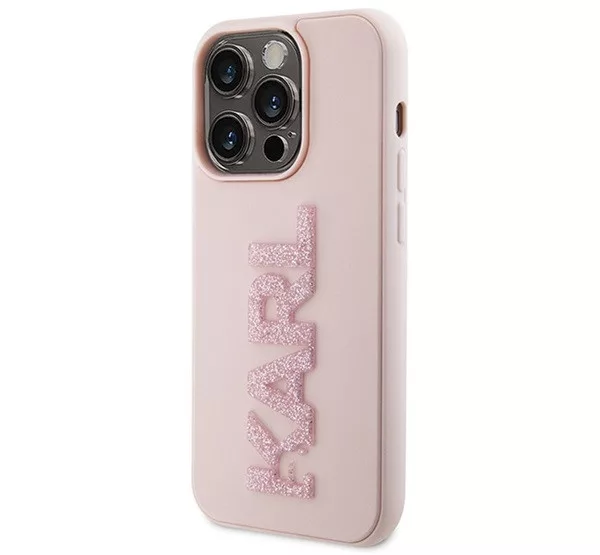 Karl Lagerfeld 3D Rubber Glitter Logo Apple iPhone 15 Pro hátlap tok, rózsaszín
