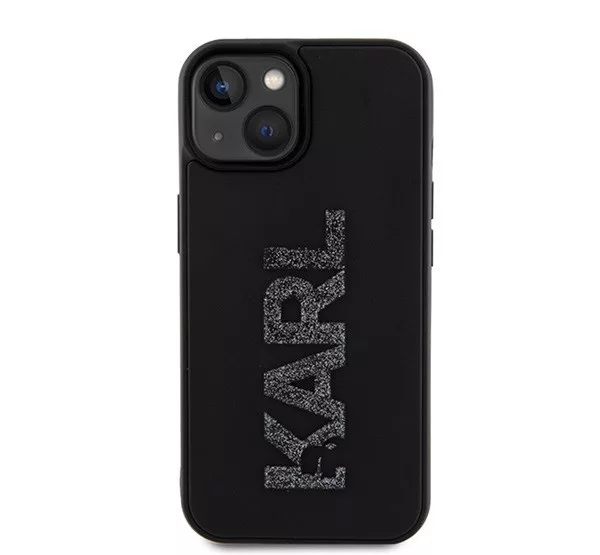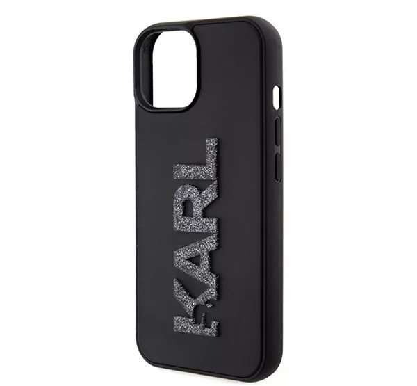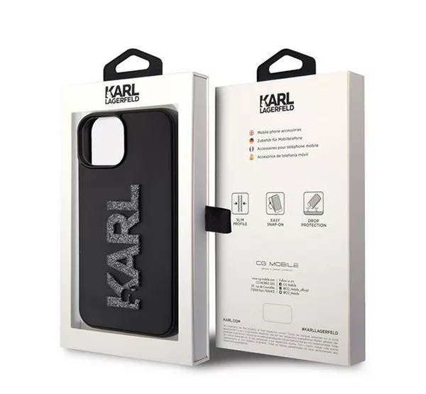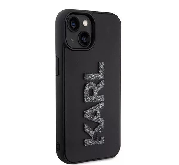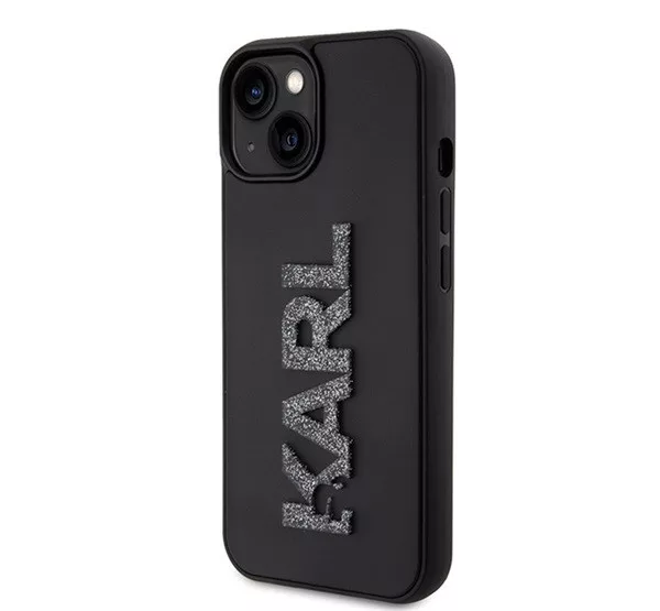 Karl Lagerfeld 3D Rubber Glitter Logo Apple iPhone 15 hátlap tok, fekete