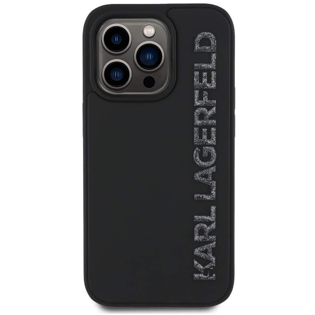 Karl Lagerfeld 3D Rubber Glitter Logo iPhone 13 Pro csillámos hátlap tok, fekete