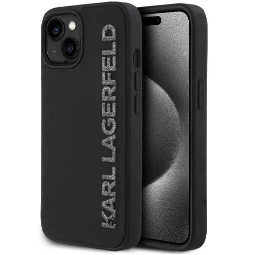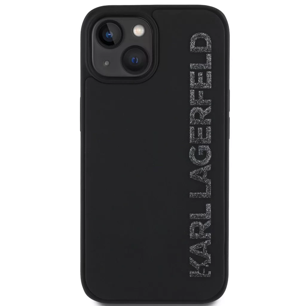 Karl Lagerfeld 3D Rubber Glitter Logo iPhone 13 csillámos hátlap tok, fekete