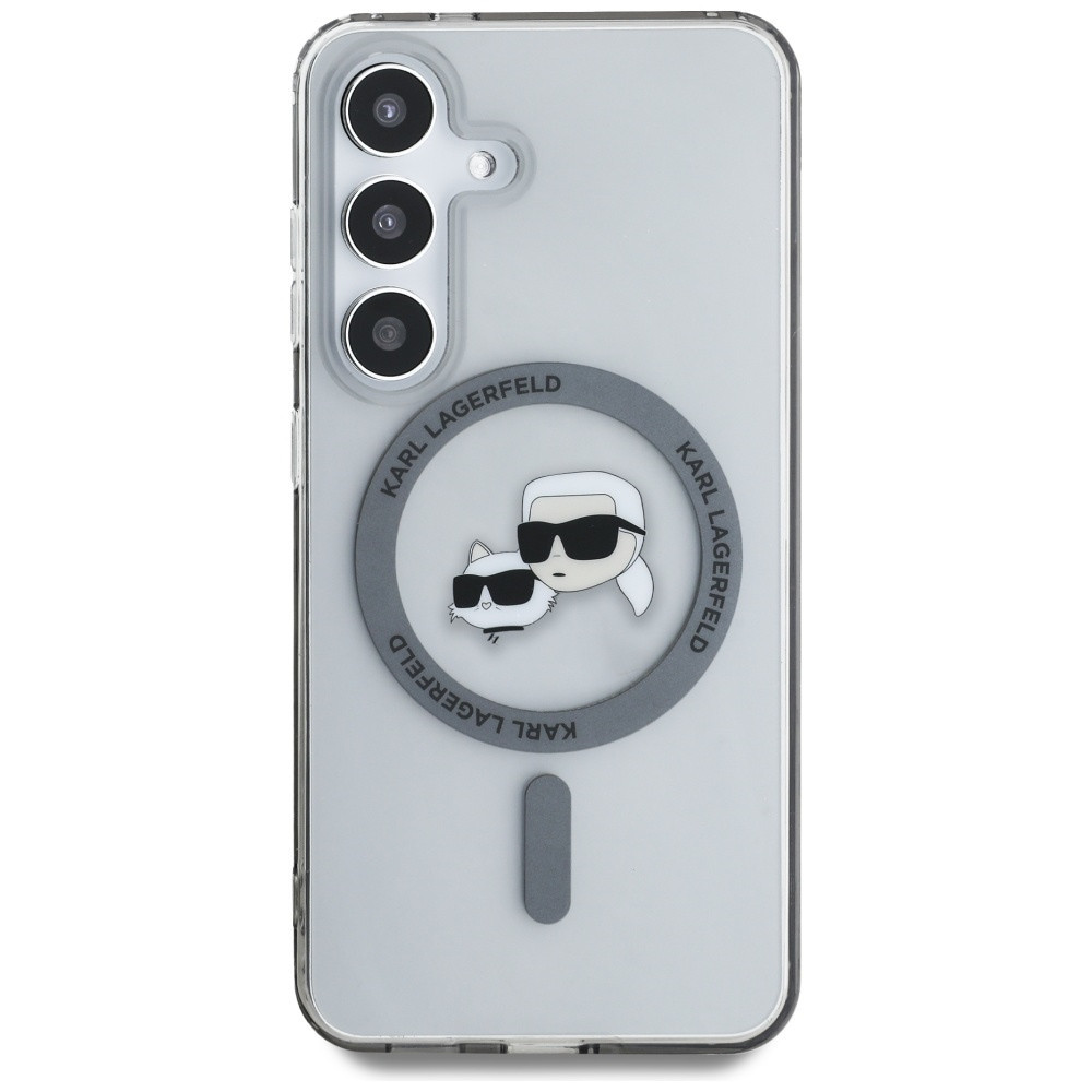 Karl Lagerfeld Button Karl & Choupette Heads Printed Logo Galaxy S25+ MagSafe hátlap tok, fekete