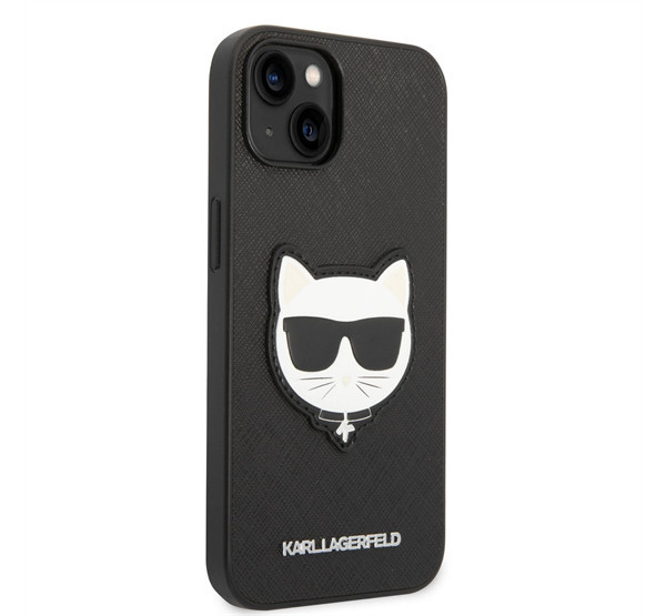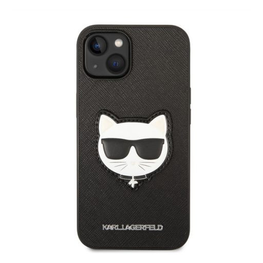 Karl Lagerfeld Choupette Head Saffiano bőr hátlap tok Apple iPhone 14 Plus, fekete