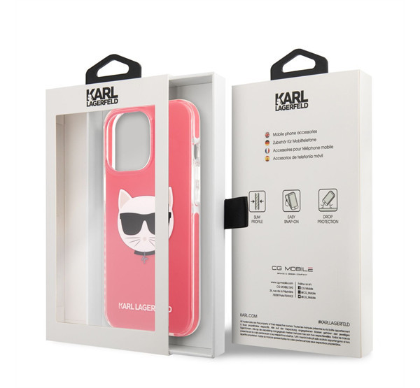Karl Lagerfeld Choupette Head TPE szilikon hátlap tok Apple iPhone 13 Pro Max, rózsaszín