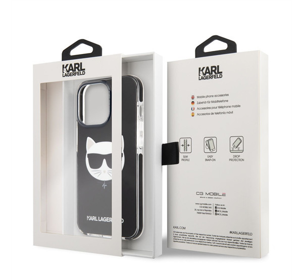 Karl Lagerfeld Choupette Head TPE szilikon hátlap tok Apple iPhone 13 Pro, fekete