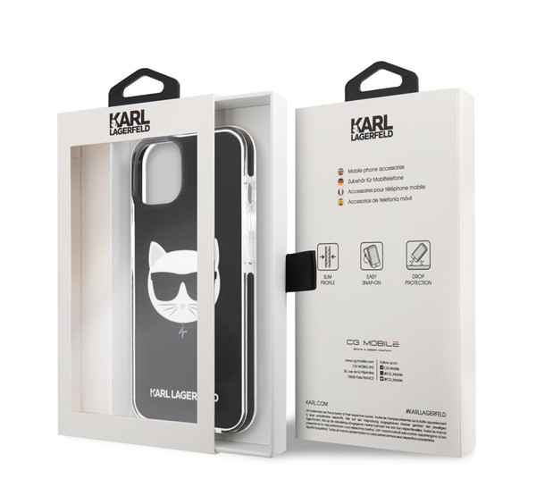 Karl Lagerfeld Choupette Head TPE szilikon hátlap tok Apple iPhone 13, fekete