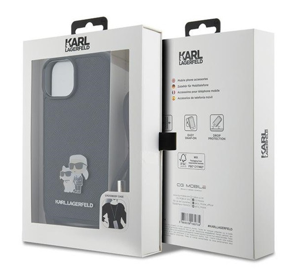 Karl Lagerfeld Crossbody Saffiano Metal Pin Karl Apple iPhone 15 Plus hátlap tok, fekete