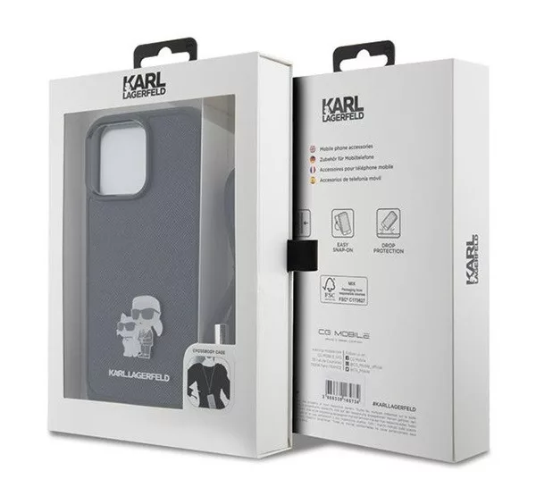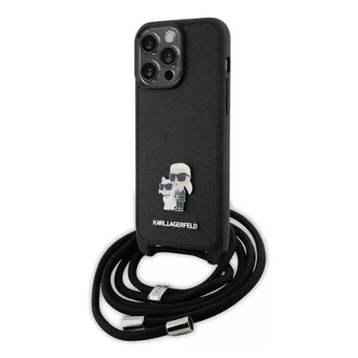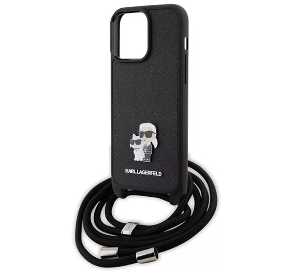 A Karl Lagerfeld Crossbody Saffiano Metal Pin Karl & Choupette hátlap tok elegáns és praktikus választás a telefonod számára. A Saffiano anyag erős és tartós, megvédi a készüléket a karcolásoktól és ütődésektől. Az aranyszínű Karl és Choupette fém dísz egyedi megjelenést biztosít. A tokhoz tartozó crossbody pánt könnyű hordozást tesz lehetővé, és a pontos kivágások révén minden gomb és csatlakozó könnyen elérhető marad.