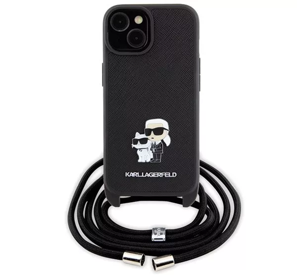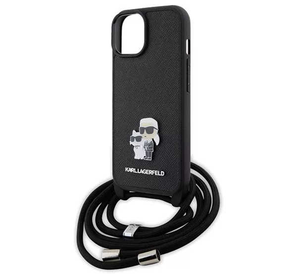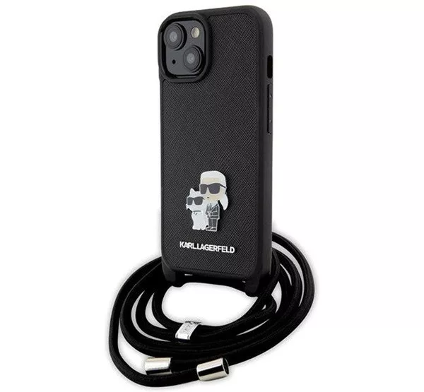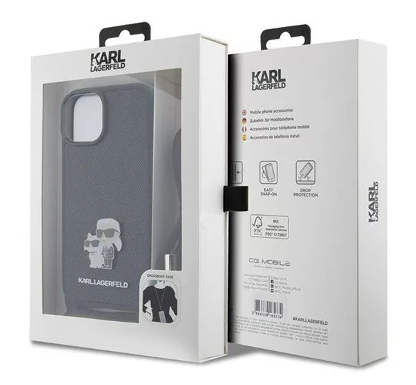 A Karl Lagerfeld Crossbody Saffiano Metal Pin Karl & Choupette hátlap tok elegáns és praktikus választás a telefonod számára. A Saffiano anyag erős és tartós, megvédi a készüléket a karcolásoktól és ütődésektől. Az aranyszínű Karl és Choupette fém dísz egyedi megjelenést biztosít. A tokhoz tartozó crossbody pánt könnyű hordozást tesz lehetővé, és a pontos kivágások révén minden gomb és csatlakozó könnyen elérhető marad.