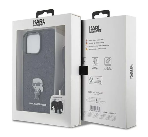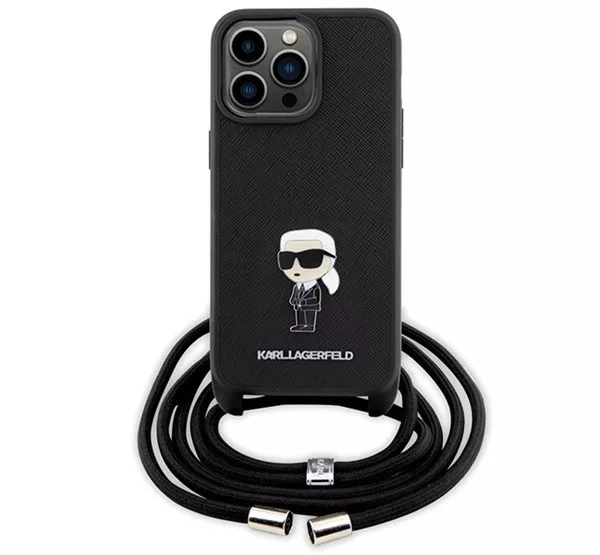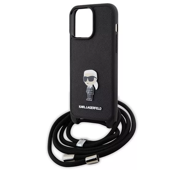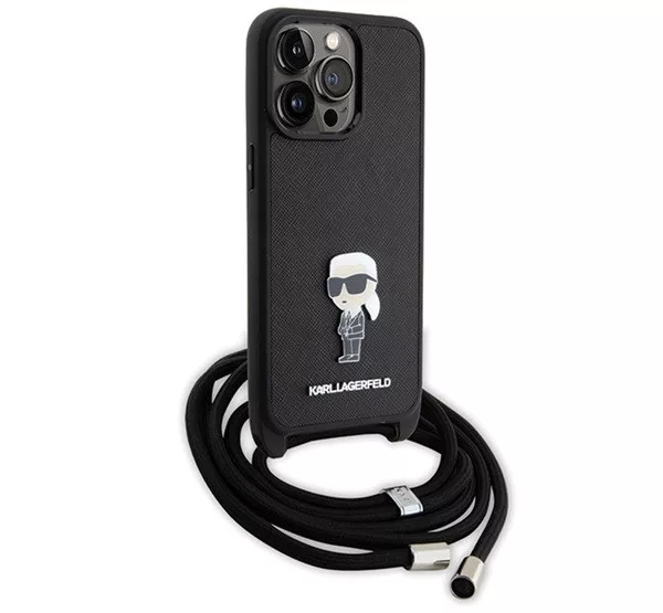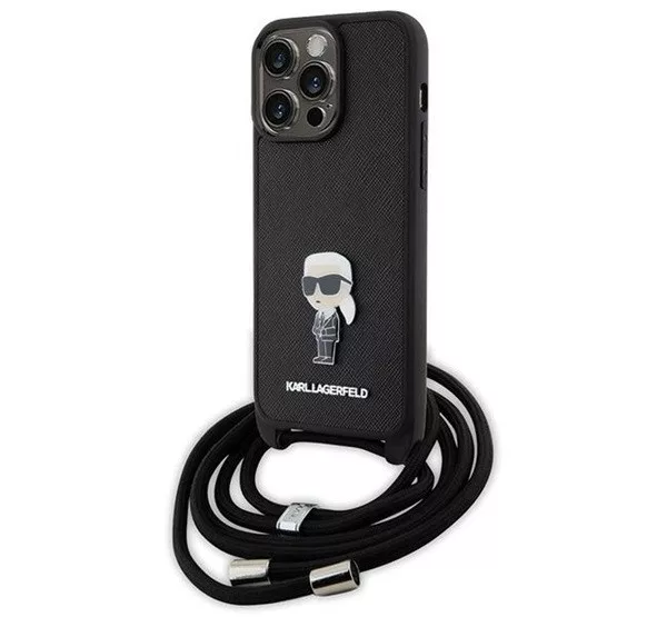 Karl Lagerfeld Crossbody Saffiano Monogram Metal Pin Apple iPhone 15 Pro Max hátlap tok, fekete