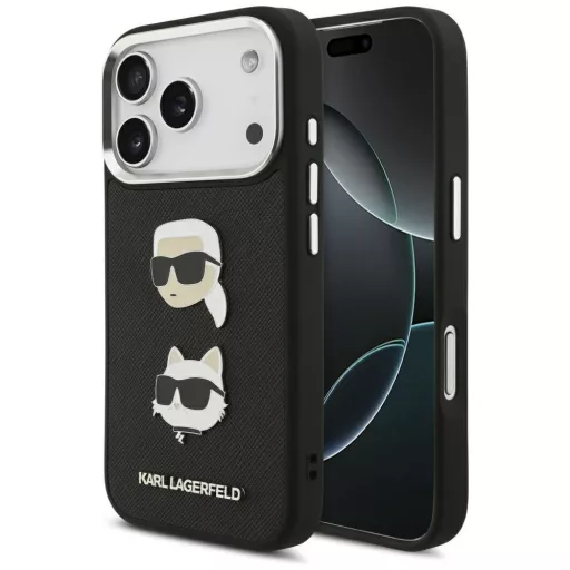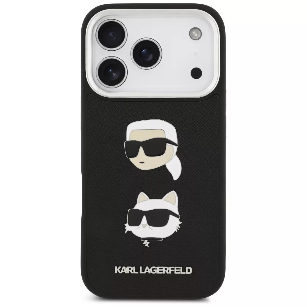 Karl Lagerfeld FW Grained Karl & Choupette Heads Pins & Logo Apple iPhone 17 Pro hátlap tok, fekete