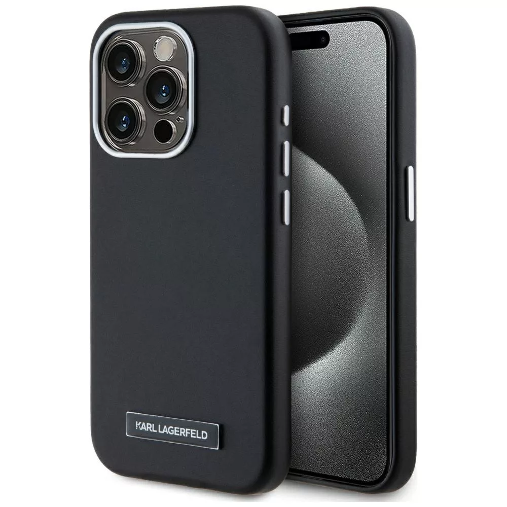 Ez az elegáns tok kiváló minőségű öko-bőrből készült, ami finom, matt megjelenést kölcsönöz neki. Ezenkívül fémbetétekkel rendelkezik a kamera kerete körül és az oldalsó gombokon, ami kiemeli a részletek iránti figyelmet. A tok alsó részén Karl Lagerfeld logójával ellátott embléma található, ami luxusos hangulatot kölcsönöz a kialakításnak.