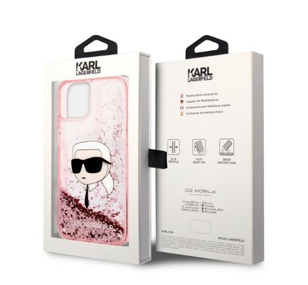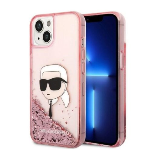 Karl Lagerfeld Glitter Karl Head Apple iPhone 14 Plus hátlap tok, rózsaszín