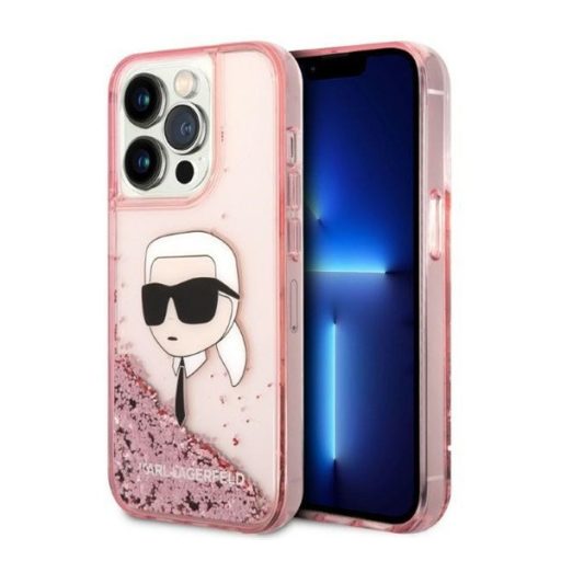 Karl Lagerfeld Glitter Karl Head Apple iPhone 14 Pro Max hátlap tok, rózsaszín
