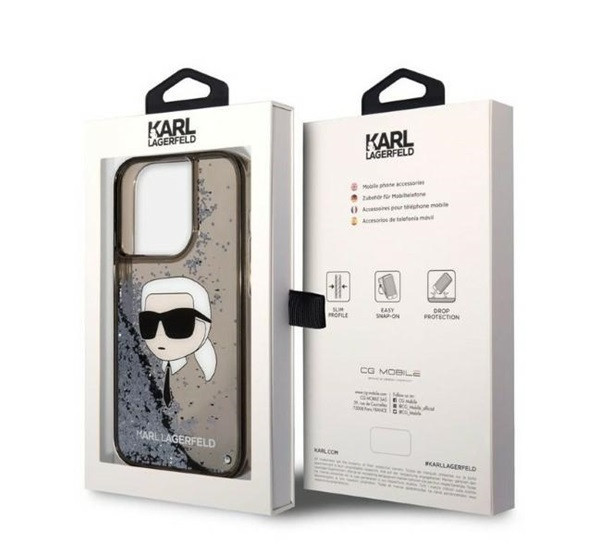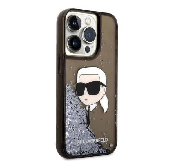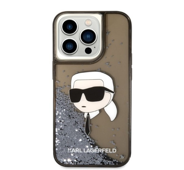 Karl Lagerfeld Glitter Karl Head Apple iPhone 14 Pro hátlap tok, fekete