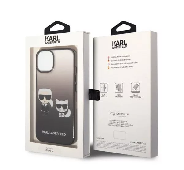 Karl Lagerfeld Gradient Ikonik Karl & Choupette Apple iPhone 14 Plus hátlap tok, fekete