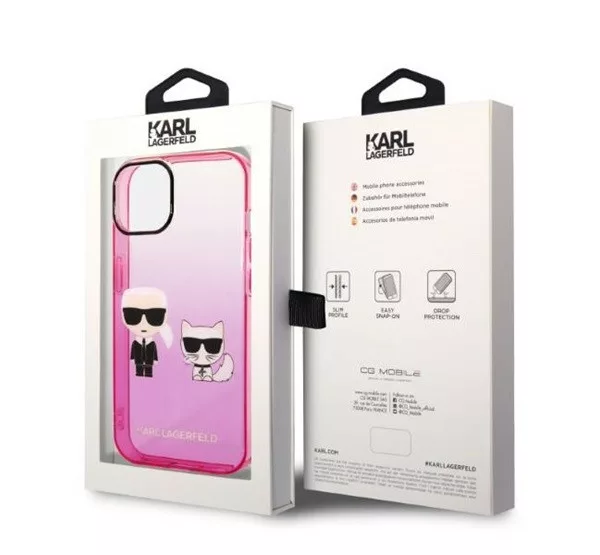 A Karl Lagerfeld Gradient Ikonik Karl & Choupette hátlap tok stílusos és tartós védelmet nyújt a készülékednek. A fekete szilikon tok rugalmas és ütésálló, megvédi a telefont a karcolásoktól és ütődésektől. Az egyedi gradient dizájn és a Karl & Choupette grafika különleges megjelenést kölcsönöz. A pontos kivágások révén minden gomb és csatlakozó könnyen elérhető marad, így a telefon teljes mértékben használható.